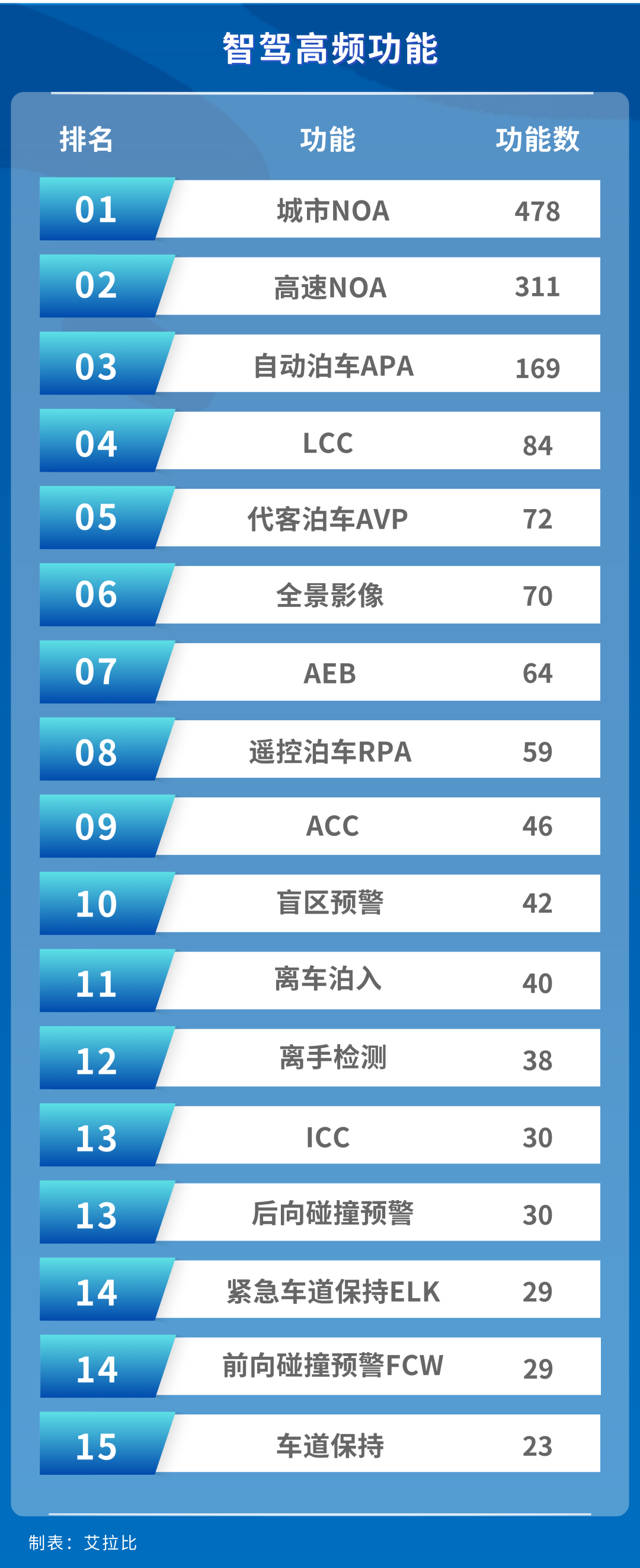 关于城市NOA功能的升级数量为478个,从高端车型向中低端车型全面渗透。关于高速NOA的升级数量为311个,也在不断进化的过程中。