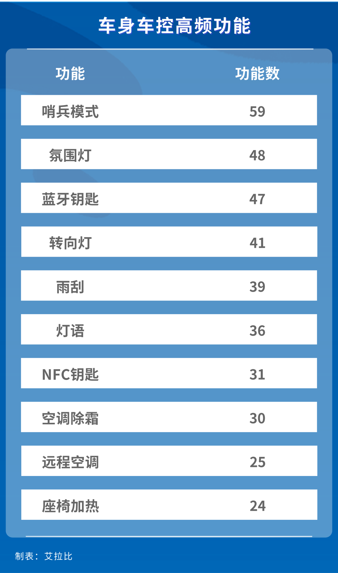 从功能频次来看,哨兵模式以59次的高频率位居榜首,这清晰地表明用户对车辆安全和监控功能的关注度颇高。同时,随着用户对车辆远程控制需求增加,上新的远程车控的功能高达200+项,实现了车控小类功能的突破。