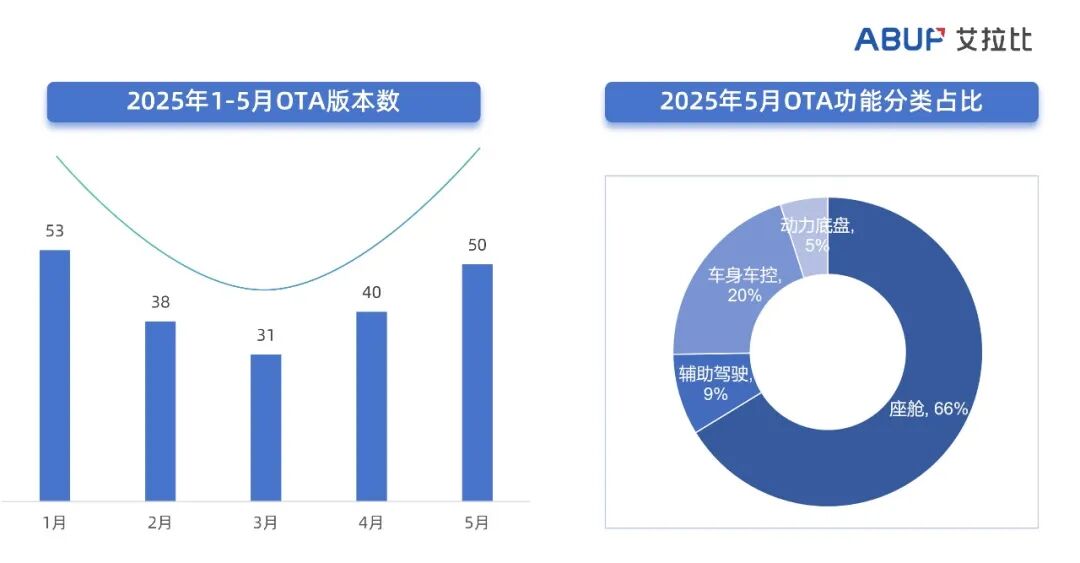 5月乘用车OTA市场延续回暖态势,活跃度已恢复至峰值时期70%水平。全月27个品牌累计推送50个版本升级,覆盖61款车型,环比增幅达25%。值得关注的是,尽管同比去年仍存在9%的降幅,但复苏速度已超出行业预期,显示市场正逐步走出政策调整过渡期。