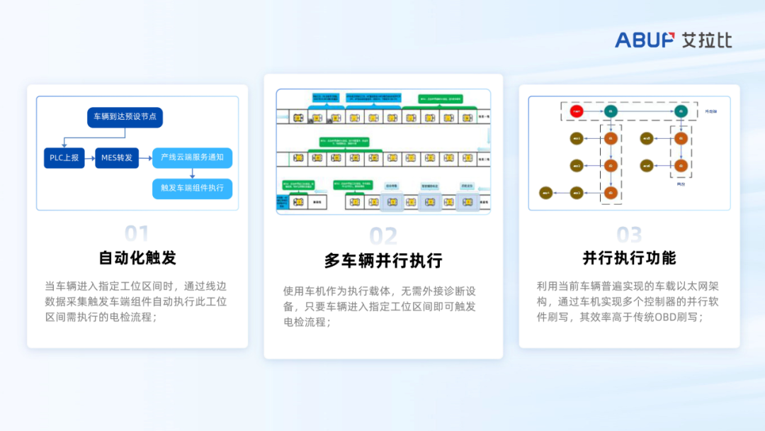 相较于传统电检方式,产线OTA在执行电检时尤其在软件刷写环节效率优势显著,恰恰可以和汽车智能化相辅相成,其核心技术优势体现在以下三个方面:
