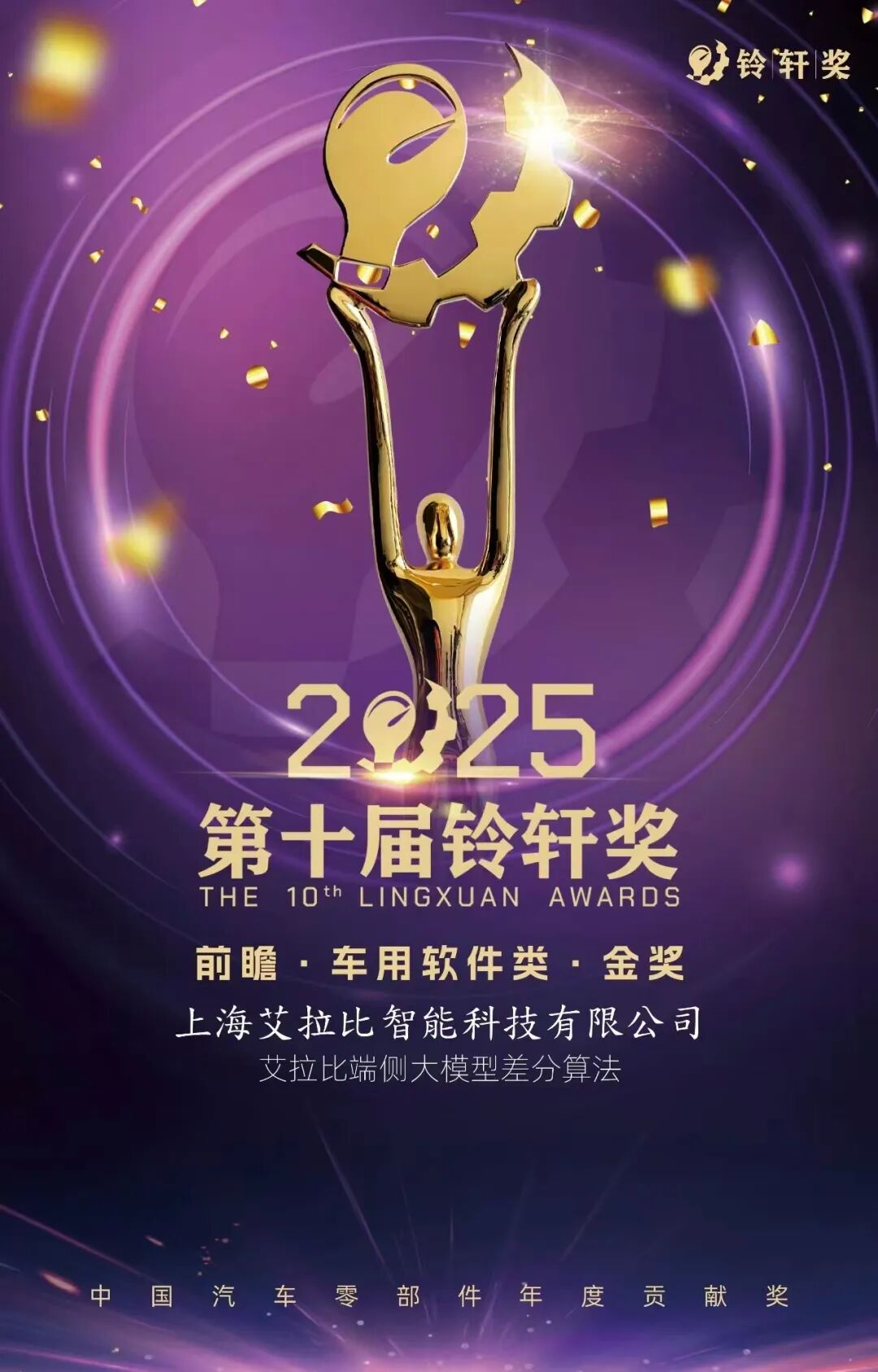 12月5-6日于苏州举行的2025新汽车技术合作生态交流会(WNATCES 2025)上,第十届铃轩奖颁奖典礼隆重揭幕。艾拉比凭借“端侧大模型差分算法”与“智能售后诊断设备-ABOX”分别荣膺前瞻类金奖与量产类金奖,充分展现了艾拉比在汽车智能化软件领域的持续深耕与领先地位。