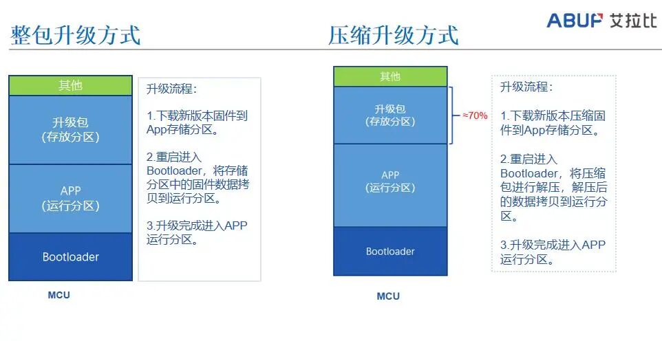 在嵌入式系统领域,微控制器(MCU)的固件升级是确保设备性能和安全性的关键步骤。艾拉比智能科技有限公司提供了多种MCU升级方案,其中差分升级方案以其独特优势脱颖而出。