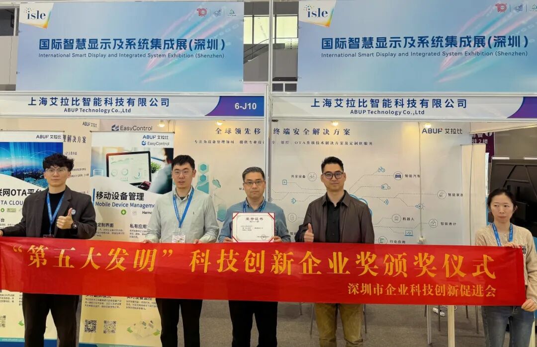 颁奖现场:艾拉比荣获“科技创新企业奖” 展会期间,主办方还举行了隆重的颁奖典礼,对那些在科技创新领域的杰出贡献和努力的企业给予表彰和颁奖。艾拉比凭借卓越的科技创新成果,在本届“第五大发明”科技创新企业评奖活中,被授予“科技创新企业奖”!