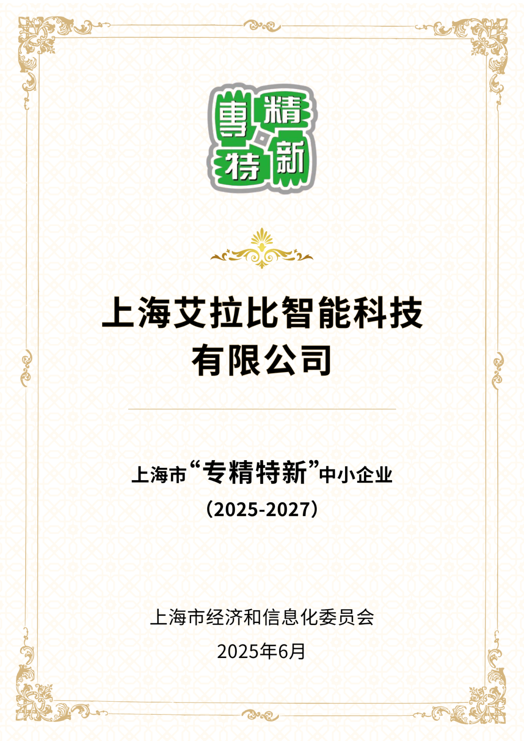 近日,上海市经济和信息化委员会正式发布2025年度第一批上海市专精特新企业名单。经严格专家评审和综合评估,上海艾拉比智能科技有限公司(以下简称“艾拉比”)再次成功入选,荣登榜单。