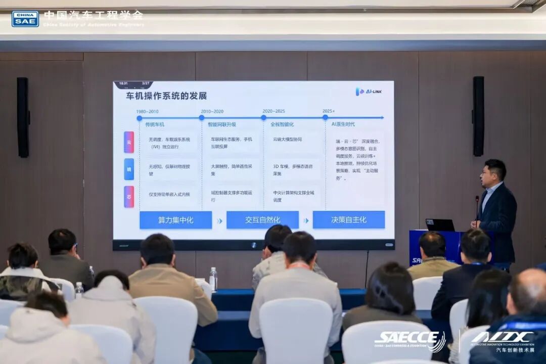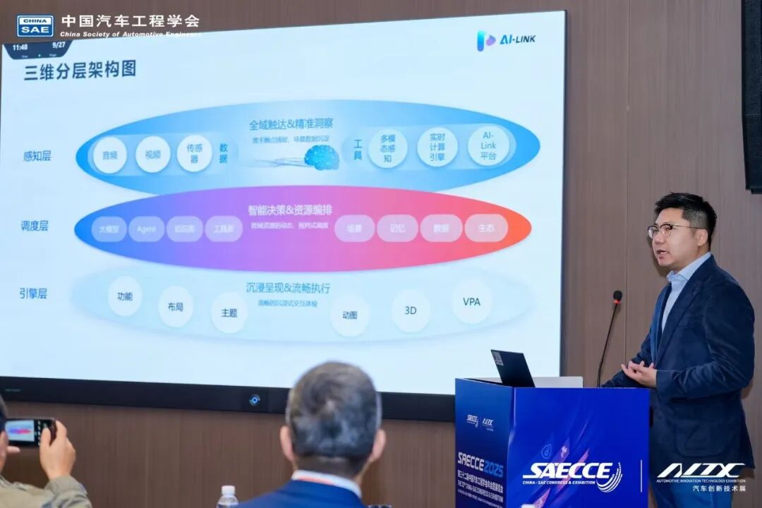 10月21-24日,第三十二届中国汽车工程学会年会暨展览会在重庆科学会堂隆重举行。作为年会重要组成部分,由中国汽车工程学会与中国汽车工程学会汽车电子技术分会联合举办的“基于智能化、电动化的核心控制算法创新与应用研究”分论坛于10月23日上午成功召开。艾博连首席执行官周恩泽先生应邀出席论坛,并发表了题为《端感知·云调度·芯引擎:构建主动服务新体验》的主题演讲,分享了艾博连在汽车智能座舱领域的创新理念与技术实践。
